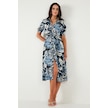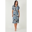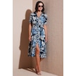 Lela Desenli Relaxed Fit Balon Kol Yırtmaçlı Kemerli Midi Boy Bayan Elbise 67810558 Saks