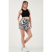 Lela Desenli Slim Fit Yüksek Bel Bağlama Detaylı Bayan Şort Etek 5865358 Siyah