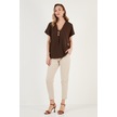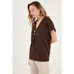 Lela Düğme Detaylı V Yaka Bayan Bluz 5865567 Kahve