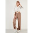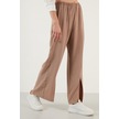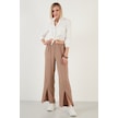 Lela Elastik Bel Bantlı Yırtmaçlı Rahat Kesim Bayan Pantolon 6057038 Vizon