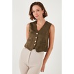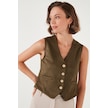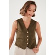 Lela Fitted Scuba Süet V Yaka Düğmeli Bayan Yelek 5865576 Haki