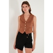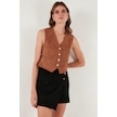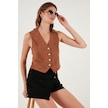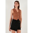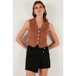 Lela Fitted Scuba Süet V Yaka Düğmeli Bayan Yelek 5865576 Kiremit