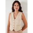 Lela Fitted Scuba Süet V Yaka Düğmeli Bayan Yelek 5865576 Taş