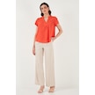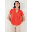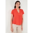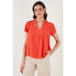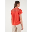 Lela Güpür Detaylı % 100 Pamuk Regular Fit V Yaka Bayan Bluz 611Bz0286 Nar Çiçeği