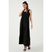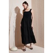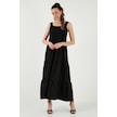 Lela Relaxed Fit Volanlı Uzun Bayan Elbise 611El010 Siyah