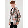 Lela Kapüşonlu Çift Cepli Ekoseli Oduncu Erkek Çocuk Gömlek Cf25W81786 Bej