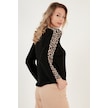 Lela Kolları Leopar Desenli Bisiklet Yaka Bayan Bluz 5863809 Siyah