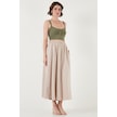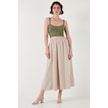 Lela Modest Pamuk Ve Keten Karışımlı Yüksek Bel Cepli Uzun Kiloş Tesettür Bayan Etek 668Yp4443 Taş