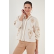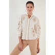 Lela Nakış Işlemeli Truvakar Kol Hakim Yaka Pamuklu Şile Bezi Bayan Gömlek 611Bz0044 Ekru-Bej