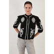 Lela Nakış Işlemeli Truvakar Kol Hakim Yaka Pamuklu Şile Bezi Bayan Gömlek 611Bz0044 Siyah-Ekru