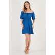Lela Önü Büzgülü Balon Kollu Mini Bayan Elbise 5869005 Saks