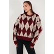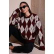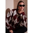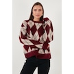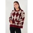Lela Oversize Fit Bisiklet Yaka Baklava Desenli Yumuşak Dokulu Bayan Kazak 4616223 Bordo