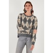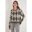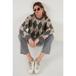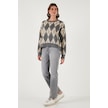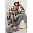 Lela Oversize Fit Bisiklet Yaka Baklava Desenli Yumuşak Dokulu Bayan Kazak 4616223 Gri