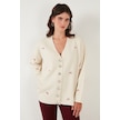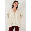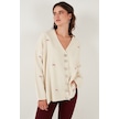 Lela Oversize Fit Desenli V Yaka Triko Bayan Hırka 4616193 Krem-Kırmızı