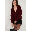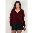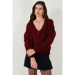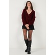 Lela Oversize Fit V Yaka Fiyonk Detaylı Düğmeli Bayan Hırka 4615577 Bordo