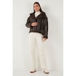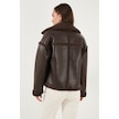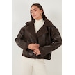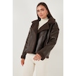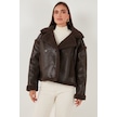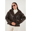 Lela Oversize Kruvaze Yaka Peluş Detaylı Suni Deri Biker Ceket Bayan Mont 6810247 Kahve