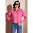 Lela Pamuk Ve Keten Karışımlı Regular Fit Önü Kısa Arkası Uzun Bayan Gömlek 6772867 Fuşya