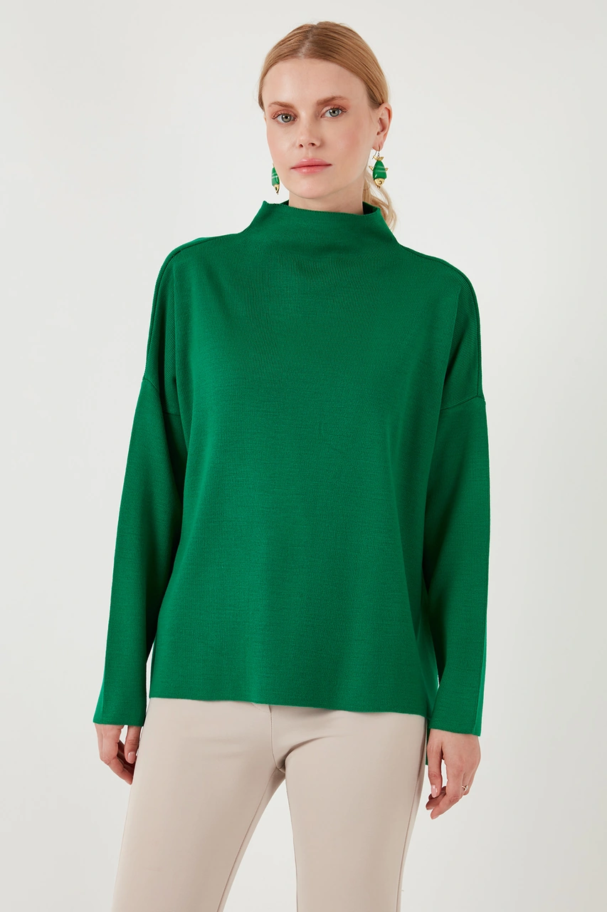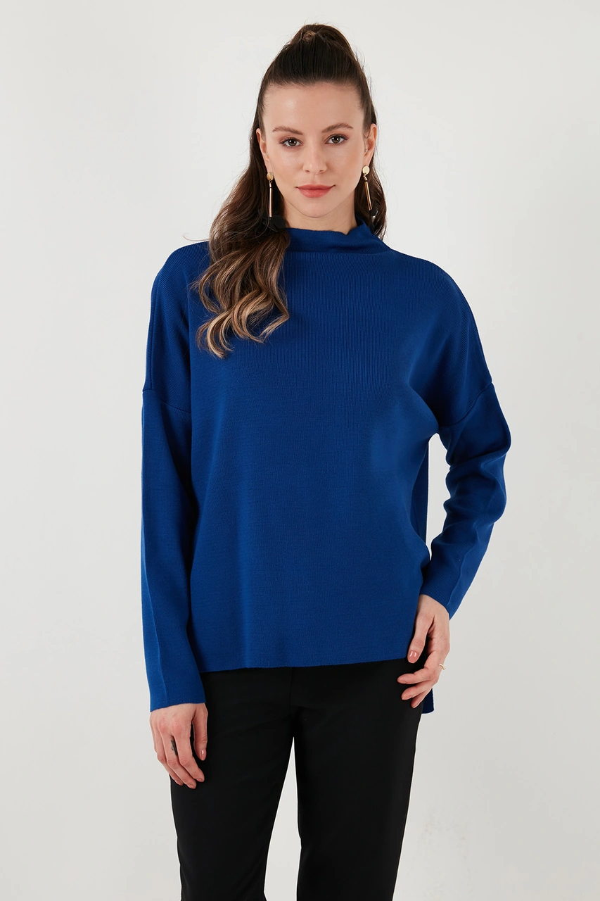 Lela Pamuklu Arkası Uzun Dik Yaka 2'Li Paket Triko Bayan Kazak 4615002S2 Benetton-Mürekkep