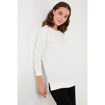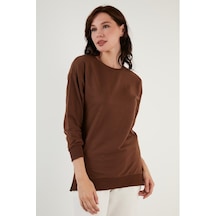 Lela Pamuklu Regular Fit Bisiklet Yaka Basic Bayan Sweat 5863569 Taş