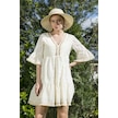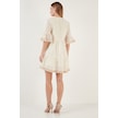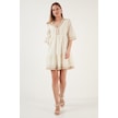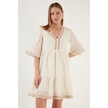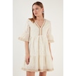 Lela Pamuklu Volanlı Güpür Detaylı Fistolu Mini Bayan Elbise 6531617 Ekru
