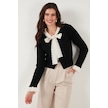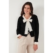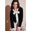 Lela Premium Dantelli Bağlamalı Yaka Regular Fit Düğmeli Triko Bayan Hırka 680Hi00251 Siyah