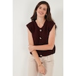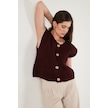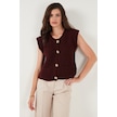 Lela Premium Oversize Fit Bisiklet Yaka Düğmeli Örgü Bayan Yelek 680Yl1416 Bordo
