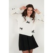Lela Premium Regular Fit Bisiklet Yaka Fiyonk Detaylı Triko Bayan Kazak 680Kz00155 Ekru