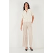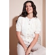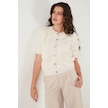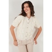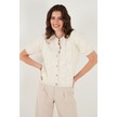 Lela Premium Regular Fit Bisiklet Yaka Tüllü Çiçekli Kısa Kollu Bayan Hırka 680Hi00386 Ekru
