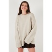 Lela Regular Fit Bisiklet Yaka Basic Triko Bayan Kazak 4616213 Taş