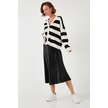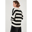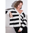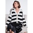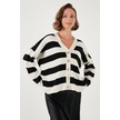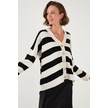 Lela Regular Fit Çizgili V Yaka Düğmeli Soft Akrilik Bayan Hırka 4615188 Taş-Siyah