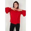 Lela Regular Fit Dikiş Detaylı Düz Yaka Balon Kol Bayan Gömlek 611Go00003 Kırmızı