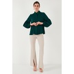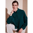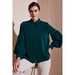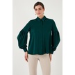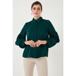 Lela Regular Fit Dikiş Detaylı Düz Yaka Balon Kol Bayan Gömlek 611Go00003 Zümrüt