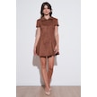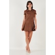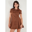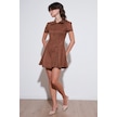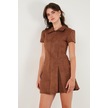 Lela Regular Fit Fermuarlı Polo Yaka Kısa Kollu Pileli Süet Bayan Elbise 5866438 Taba