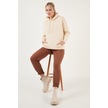 Lela Regular Fit Pamuklu Kapüşonlu Yaka Şardonlu Kışlık Bayan Sweat 5863854 Taş