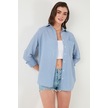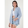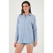 Lela Regular Fit Uzun Kollu Cepli Çizgili Bayan Gömlek 6772895 Indigo
