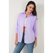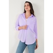 Lela Regular Fit Uzun Kollu Cepli Çizgili Bayan Gömlek 6772895 Lila