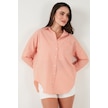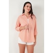 Lela Regular Fit Uzun Kollu Cepli Çizgili Bayan Gömlek 6772895 Oranj