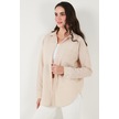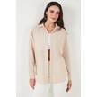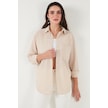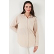 Lela Regular Fit Uzun Kollu Cepli Çizgili Bayan Gömlek 6772895 Taş