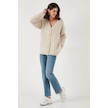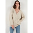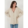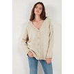 Lela Regular Fit V Yaka Düğmeli Triko Bayan Hırka 4616229 Taş