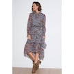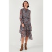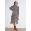 Lela Regular Fit Yaka Detaylı Volanlı Şifon Midi Bayan Elbise 611El1448 Mavi