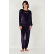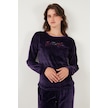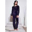 Lela Regular Fit Yumuşak Dokulu Kadife Bayan Pijama Takımı 6094200W4 Koyu Mor