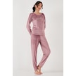 Lela Regular Fit Yumuşak Dokulu Kadife Bayan Pijama Takımı 6094200W4 Pudra