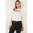 Lela Slim Fit Bisiklet Yaka Önü Pencereli Crop Bayan Bluz 5865399 Beyaz
