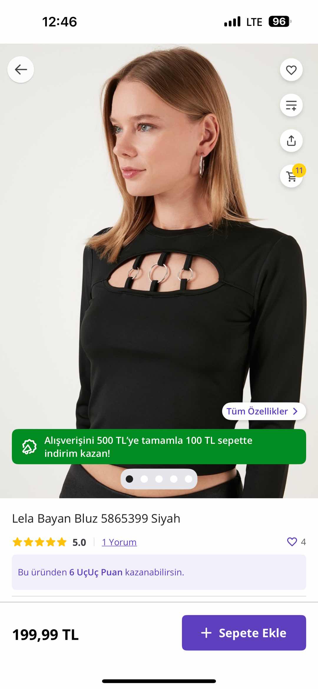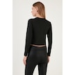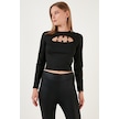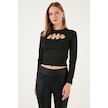 Lela Slim Fit Bisiklet Yaka Önü Pencereli Crop Bayan Bluz 5865399 Siyah