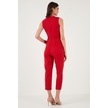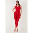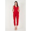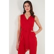 Lela Slim Fit Düz Paça Kruvaze Yaka Kemerli Bayan Tulum 6783626 Kırmızı