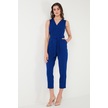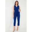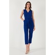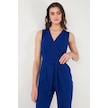Lela Slim Fit Düz Paça Kruvaze Yaka Kemerli Bayan Tulum 6783626 Saks