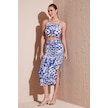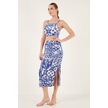Lela Slim Fit Ip Askılı Yırtmaçlı Midi Alt-Üst Bayan Takım 5865726 Saks