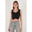 Lela Slim Fit Kalp Yaka Düğmeli Kalın Askılı Crop Bayan Yelek 5865497 Beyaz-Siyah