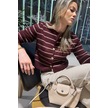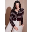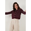 Lela Standart Fit Çizgili Yumuşak Dokulu Crop Triko Bayan Hırka 4615551 Bordo
