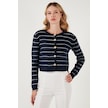 Lela Standart Fit Çizgili Yumuşak Dokulu Crop Triko Bayan Hırka 4615551 Lacivert